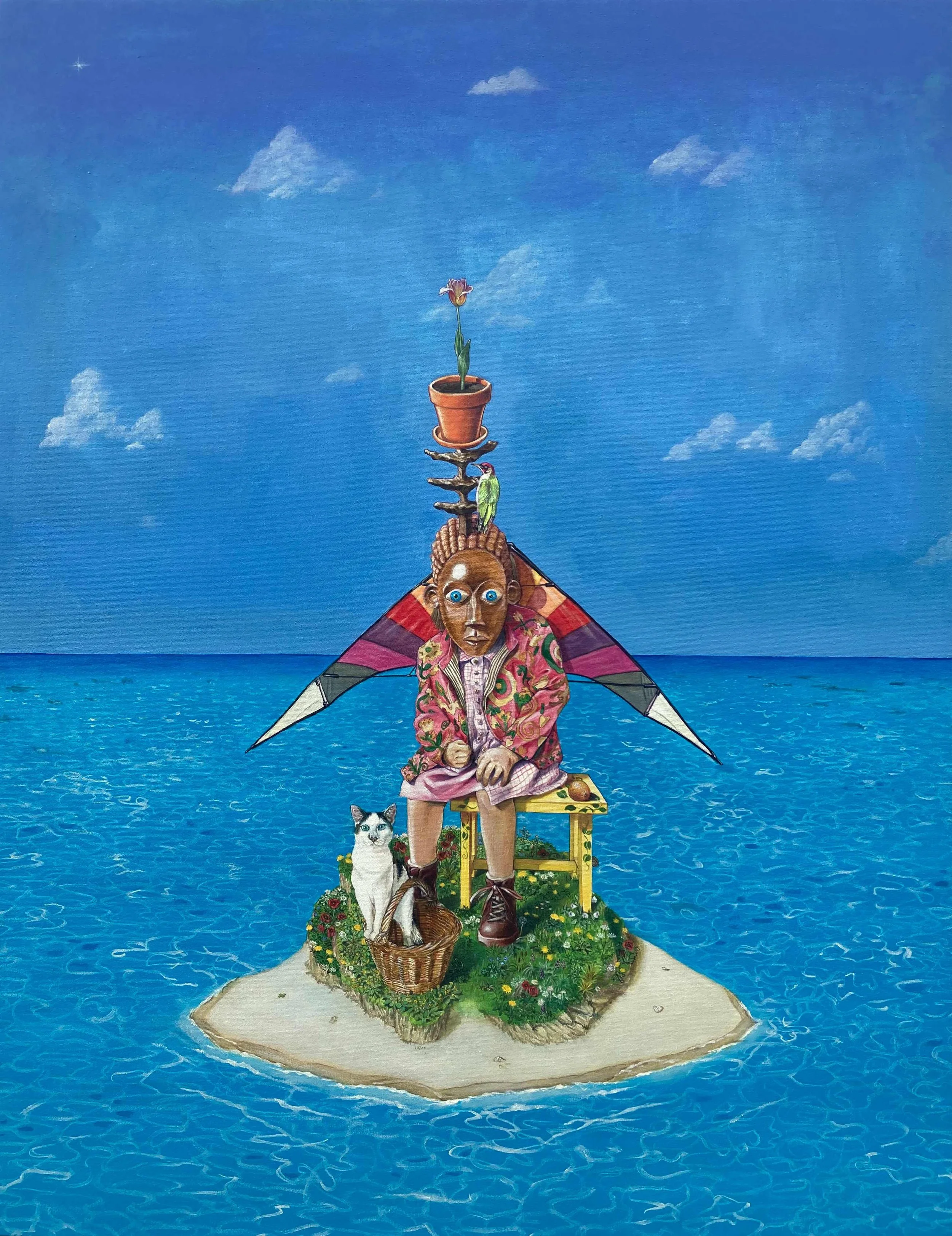 Le cerf-volant, 2021, acrylique sur carton- 69x43 cm.