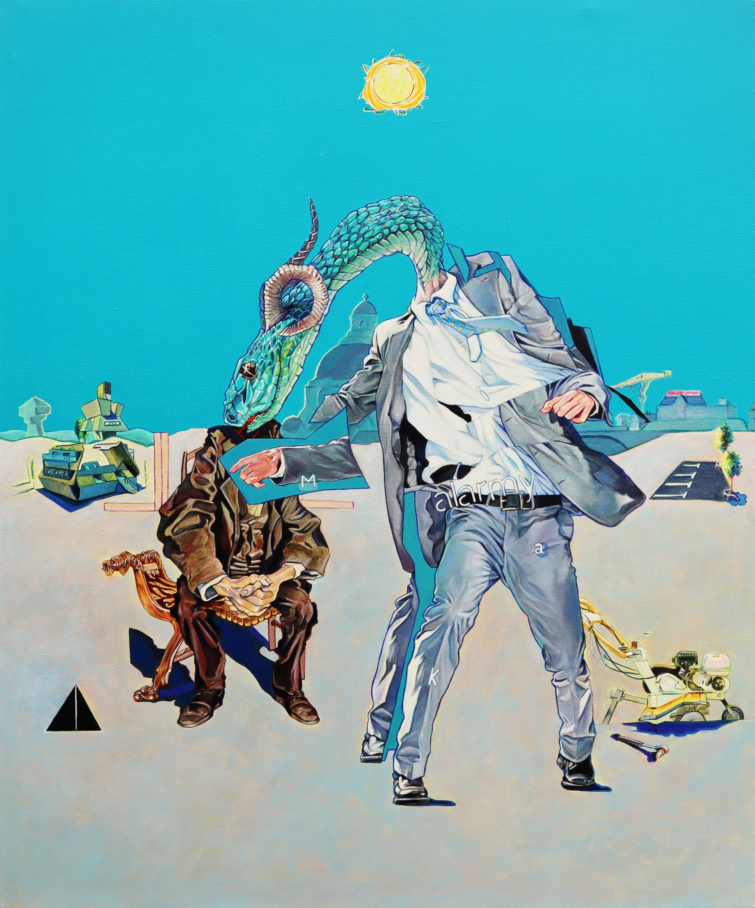 Phi et la salamandre, 2025, acrylique sur toile, 73x92 cm